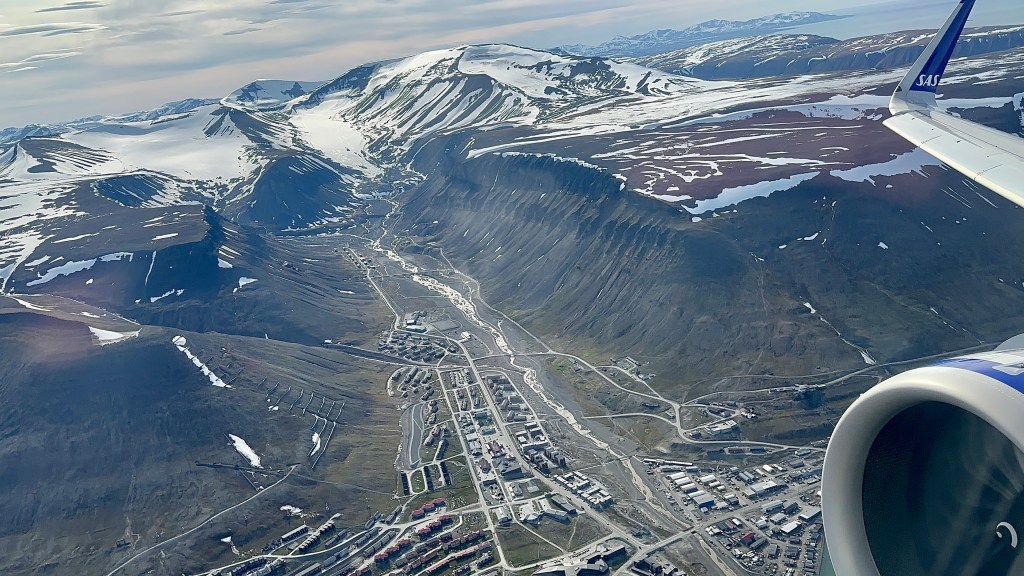 Approaching Tromsø, Norway, the first stop en route to Svalbard.Approaching Tromsø, NorwayRejected landing at Tromsø on an SAS A320neo.Approach to Svalbard Airport, the northernmost airport in the world with scheduled flights.Svalbard AirportSvalbard Global Seed VaultThe Radisson Blu Polar Hotel, the northernmost hotel in the world. Hilmar Rekstens vei, the main street in Longyearbyen, the northernmost town in the world.Longyearbyen town centre.01:30 in Longyearbyen. Longyearbyen, just after departure.